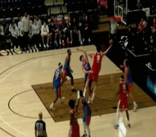 下半场的杨瀚森更加主动跑位,创造一些队友不得不给他传球的机会,终于获得更多的出手权。在防守端,杨瀚森频频送出封盖或者积极的护筐,令蓝色队的进攻屡屡无功而返,分差越来越大。